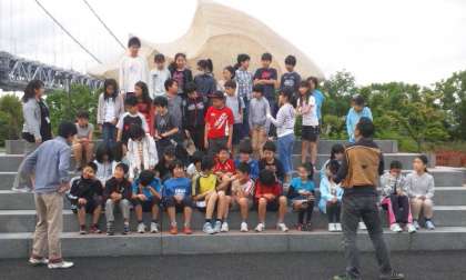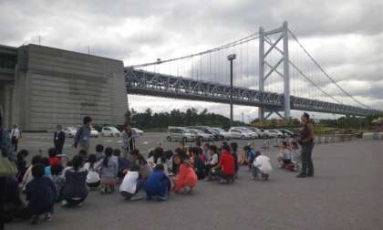 与島に着きました。瀬戸大橋をわたります。その後鳴戸大橋を渡って淡路島に入り,淡路島牧場で乳搾り・バター作り体験をします。