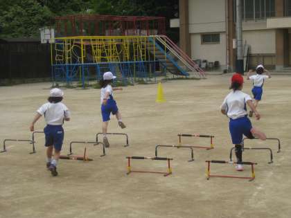 跳び箱を飛び越えたり,ネットをくぐったりしました。