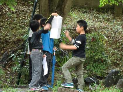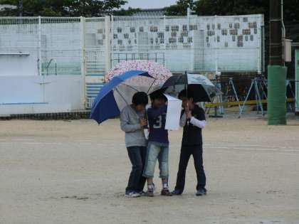 昨日は,あいにくの雨模様でしたが,雨の日の気温を調べる絶好のチャンス!!1時間ごとに,雨の中,傘をさしながら気温を調べていました。