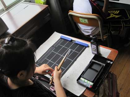 書写の授業で本格的に習字道具を使い始めました。