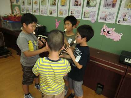 4年生は,音楽で「ファ」「ミ」「レ」のリコーダーの指づかいを学習しました。