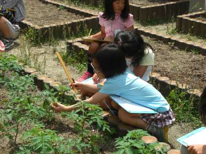 みんなで育てている野菜が大きくなってきました。