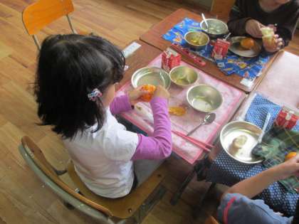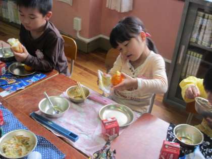 少し寒い日だったのですが,みんな大喜びで食べていました。