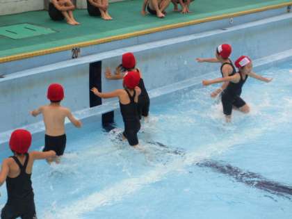 体育で,水遊びの学習が始まりました。