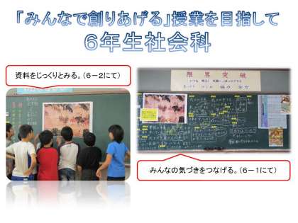 今,6年生の社会科の学習では「武士の世の中へ」の学習をしています。第1時の学習では「資料をじっくりとみる姿」や「みんなの気づきをつなごうとする姿」が見られました。このような学びの姿が連続することを目指して取組を続けていきたいと思っています。