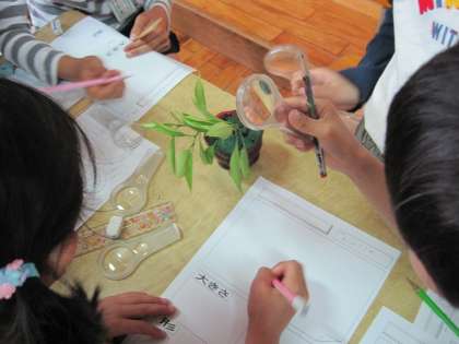 まずは卵を観察し,そのあとどのように成長していくのか,ノートに記録しながら観察しています。
