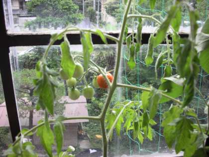教室に行ってみると,トマトの実が色付きはじめています。子どもたちは,この成長にまだ気付いていないようです。