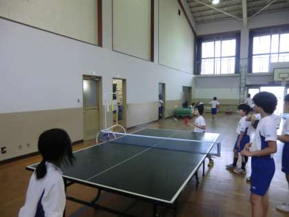 部活動の卓球では,4〜6年生が集まって練習しています。