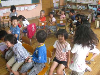 そこで,みんな遊び係の声かけにより,中間休みにイス取りゲームをしました。
