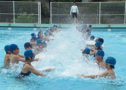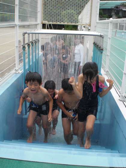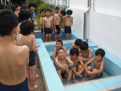 少し水が冷たく感じ,寒そうな様子も見られました。しかし,子どもたちはその水温に徐々に慣れ,最後は元気いっぱいでした!