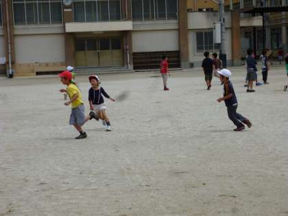 晴れている日は,中間休みに運動場で遊ぶのをとても楽しみにしている1年生。