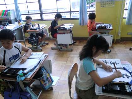 子どもたちの真剣なまなざしから,「よい字を書こう」という意欲が伝わってきました。