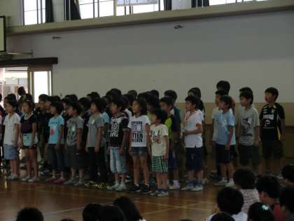 合唱「まきばのこうし」では,出だしに気を付けてのびやかに歌い,のんびりしている子牛の様子を表現することができました。高音の所や3年生と4年生がかけ合って歌う部分も,聴いていてとても心地のよい響きでした。