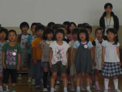 低学年は,群読「みんななかよし あかさたな」と,合唱「気球に乗ってどこまでも」でした。