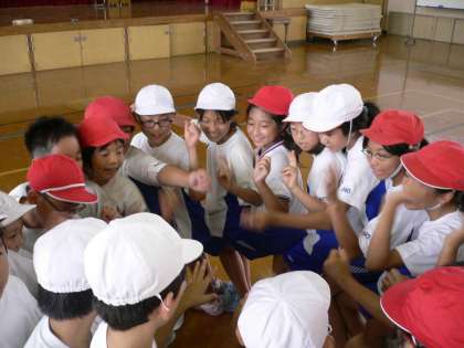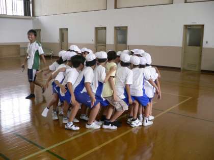 今日は,誕生月や星座などでグループを作ったり,クラスで人間いすを作ったりしました。どちらのクラスもすばやく声を掛け合って円を作り,お互いを信じてお互いの膝に座っていました。