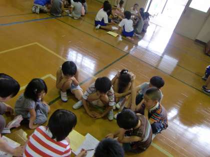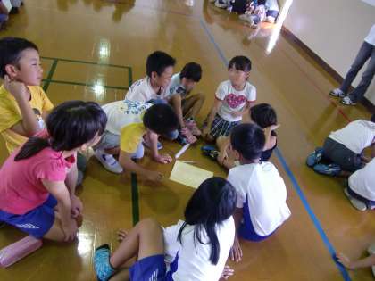 高学年のお兄さん・お姉さんのお話をしっかり聞いて,自分の役割を確認していたり,学校に帰ってからどんなゲームをするかを考えたりしていました。