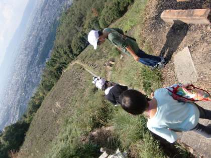 たてわりのグループで大文字にのぼりました。たんぽぽ学級の子どもたちも最後まで一生懸命にがんばり,頂上まで登りきることができました。
