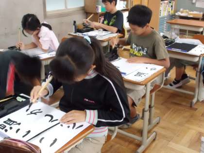 「温かい心」という文字を毛筆で書きました。はじめて,4文字に挑戦しました。