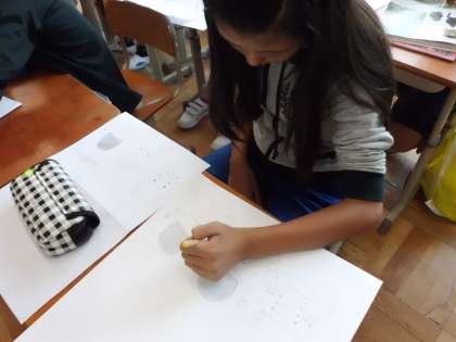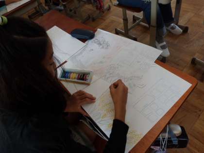 今日は,下描きをよく見て,画用紙に描いていていました。
