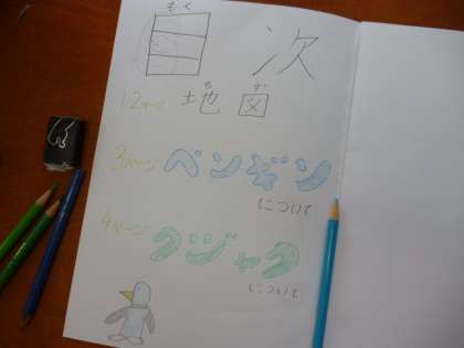 今回は,目次と表紙を完成させました。1年生に伝えるために可愛いイラスト付きになっています。