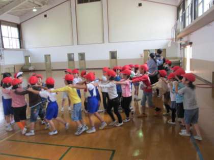 ミッション1「みんなでかもつ列車をして1本の列車になろう!」