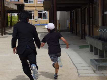 まずは,『逃走中』を行いました。指導者がハンターとなり,必死に追いかけました。ミッションが成功しなかったので,ちびっこハンターも出てきました。