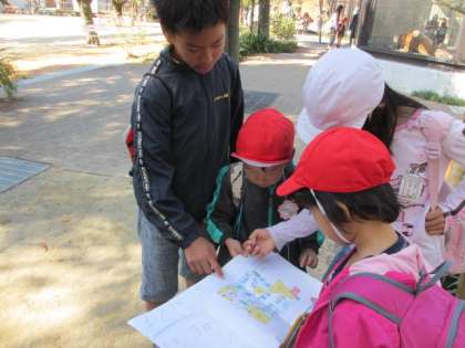 6年生は,この日のために1年生用のパンフレットを作ってくれていました。1年生は手作りパンフレットをうれしそうに見ながら,見学したい場所を決めていました。