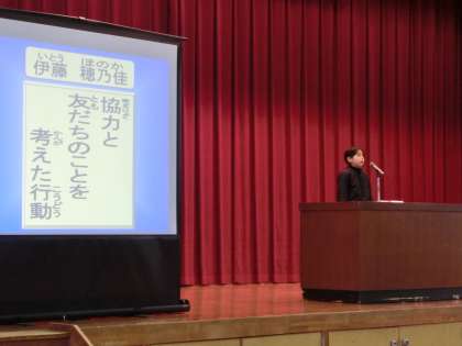 いつもより早めに登校し,寒い体育館で練習もがんばりました。そのかいあって,堂々とした発表をしてくれました。全校のみんなにも,たくさんの感想をいただきました。