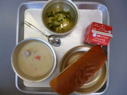 今日の給食の献立はシチュー。寒いので温かいシチューが大人気でした。