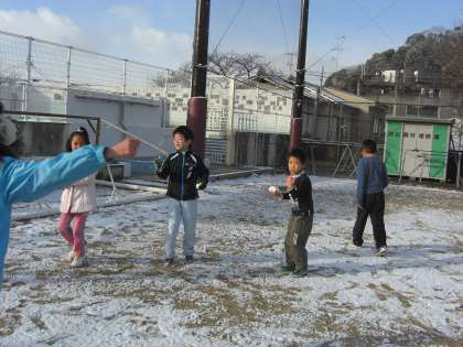 昨日の終わりの会で「明日,雪が積もっていたら,雪合戦しようね。」と約束した通り,朝,登校すると,運動場や中庭は雪で真っ白!朝の会の時間に,雪と遊びました。雪合戦をしたり雪だるまを作ったり,一人ひとり雪で思いっきり楽しみました。