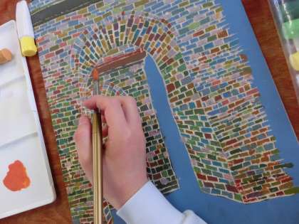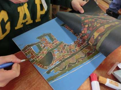 4年生 郷土を絵にする(水路閣を一版多色刷り版画に)