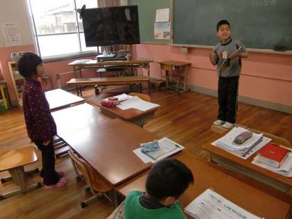 新年初のスピーチとなりました。今日は「冬休みに札幌に行ったこと」と,「中間休みに,たんぽぽのみんなであそんだこと」のスピーチを聞きました。みんな興味深々で,質問や感想がたくさん出ていました。
