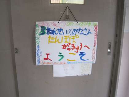 初日の今日,たんぽぽ学級へ行くと,なんと素敵な看板まで作ってお出迎えしてくれました。そのあと,少し緊張しながらの自己紹介のあとは,みんなで楽しく給食を食べました。