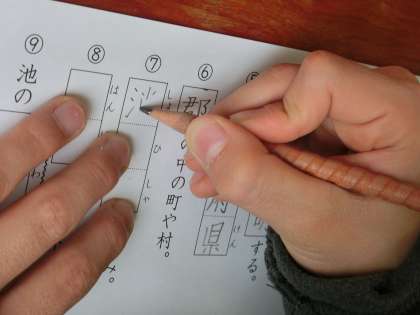 漢字10問の小テストです。集中した雰囲気の中で取り組みます。