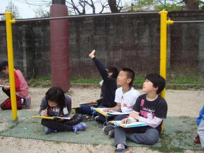 天気予報をするために,雲の様子を観察しました。今日はくもり。