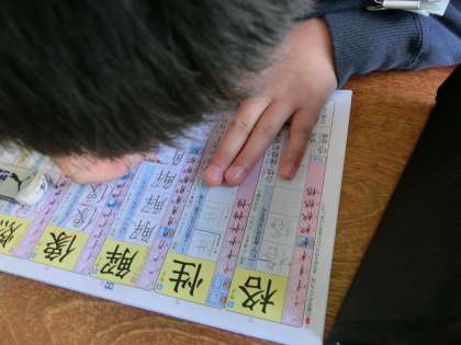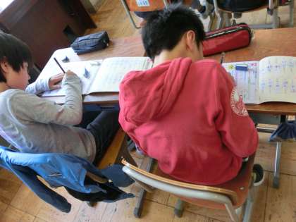 学校では書き込み式のドリルに練習し,