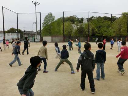 今日の休み時間も,運動場にはたくさんの5年生がいました。