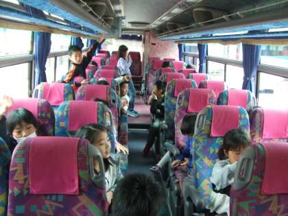 初めてみんなで貸切りバスに乗って,楽しい気分で科学センターに到着。