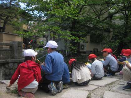 「南田公園のまわりは,銀閣寺の前とちがって,人が少ないね。」