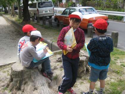 社会科の学習「わたしたちのまち」で,校区内を観察して回りました。