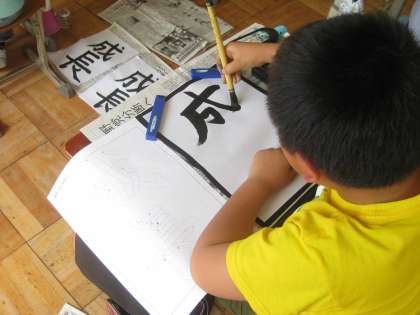 毛筆をしながら,「あ,まちがえた!」とつぶやいていました。