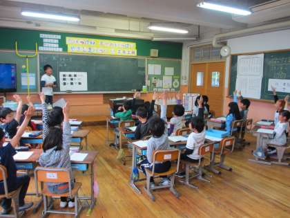 ほとんどクラス全員の手が挙がり,みんなやる気まんまんです。