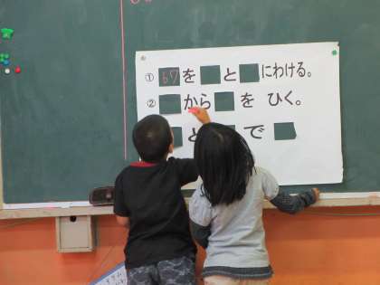 四角に当てはまる数を,お隣の人と協力して考えます。