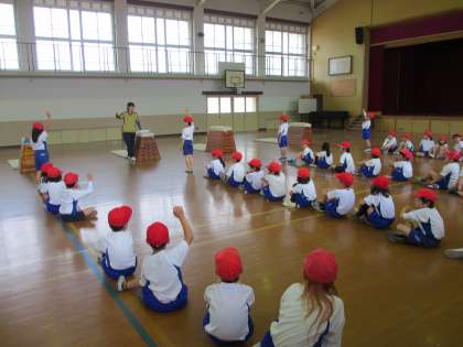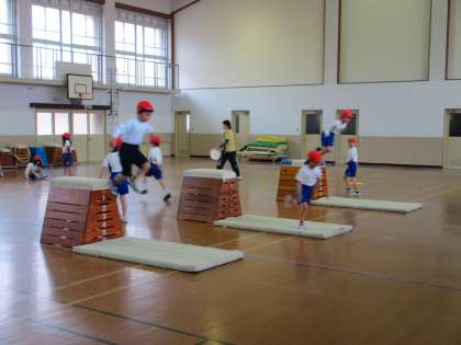 1年生のときの「忍者」を思い出し,両足で飛び乗ったり,馬のようにまたがったり・・・