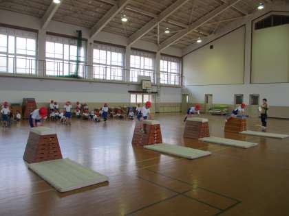 バラエティー走の走る順番を確かめた後,前回苦戦していた跳び箱を越える練習をしました。