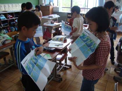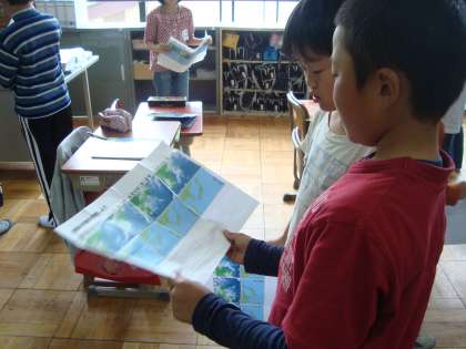 天気の変化の学習の最後に京都市の天気を予想し,友達と天気予報をしました。