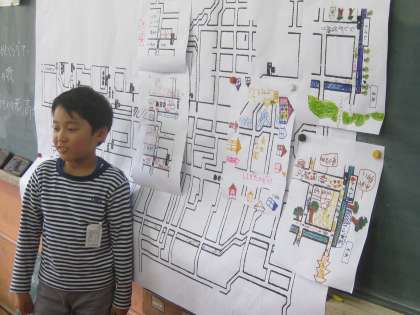 校区探検でわかったことを,絵や言葉を使って地図にまとめました。