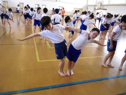 運動会に向けて,組体操の練習を頑張っている高学年です。
