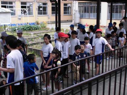 お迎え朝会実行委員の人がどのようにするのか,計画を立て,木曜・金曜日に練習をし,今日,本番を迎えました。