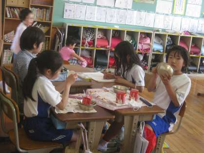 給食中の教室をのぞいてみると,